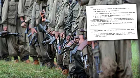İran sayfasında; Dış merkezli terörist grup olarak nitelendirilen "Kurdistan Workers Party (PKK) (Kongra-Gel)"in amacının, İran'ın kuzey batısını da kapsayan "Kürdistan"ı kurmak olduğu belirtildi Irak sayfasında; "Kurdistan Workers Party (PKK) (Kongra-Gel)"in ülke merkezli olduğu kaydedilip, amacının "Kürdistan"ı kurmak olduğu, bunun Irak'ın kuzeyi, Türkiye'nin Doğu ve Güneydoğusu, Suriye'nin kuzeyi ve İran'ın kuzey batısını kapsadığı vurgulandı. Ayrıca "PKK'nın merkezinin Kuzey Irak'taki Kandil Dağı olduğu, Süleymaniye, Erbil, Irak-İran sınırının yanısıra Sincar, Ninova, Kerkük, Tuzhurmatu'da nüfuzunu arttırdığı, Iraklı Kürt gençlerin işe alınmasında büyük rol oynadığı" anlatıldı.
