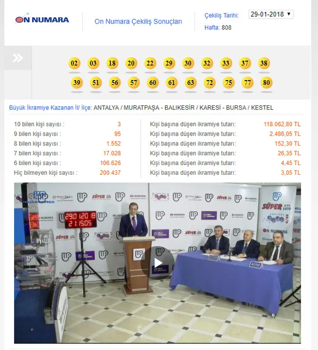 On Numara çekilişinin 808. haftasında yüz binlerce vatandaş umutlu bekleyişini sürdürüyor. Geçen hafta 10 bilen kişi sayısı 13 olmuş ve kişi başına düşen ikramiye tutarı 25.477.40 TL oldu. Geçen hafta büyük ikramiyeyi paylaşan iller Çanakkale (Merkez), Çanakkale (Biga), Edirne, Gaziantep (Şehitkamil), İstanbul (Eyüp), İstanbul (Fatih), İstanbul (Üsküdar), İstanbul (Bayrampaşa), İstanbul (Bağcılar), Kayseri (Melikgazi), Muğla (Marmaris), Samsun (Çarşamba), Bartın (Merkez) olmuştu.
