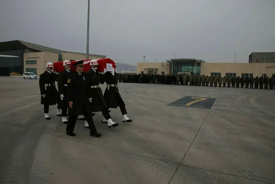 Türk Silahlı Kuvvetlerinin (TSK) Suriye'nin Afrin bölgesinde yürüttüğü Zeytin Dalı Harekatı'nda şehit düşen askerlerimiz son yolculuğuna uğurlandı