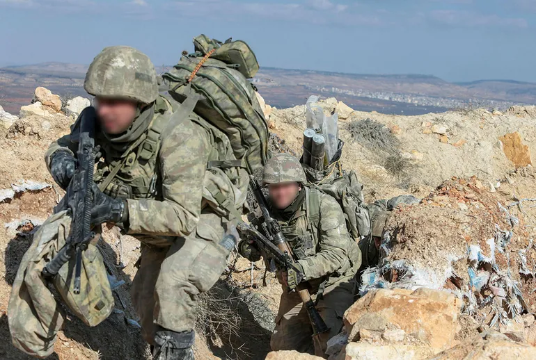 Son dakika haberi... Afrin'de dün 9 askerin şehit düştüğü 1027 rakımlı tepede çıkan çatışmada, PYD/PKK'lı teröristlerin aralarında çocukların da bulunduğu sivilleri kullanarak saldırdıkları, sivillerin arasından atılan el bombaları ile askerlerin büyük bölümünün şehit olduğu ortaya çıktı. Çatışmanın başlamasının ardından sivillerin kaçarak yeniden köye döndüğü, 40 civarında teröristin komandolar tarafından etkisiz hale getirildiği öğrenildi.