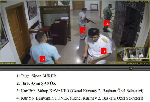 "İçeriye hızlıca girdiğimde, sağda ve solda yuvarlak geniş sütunların arkasına daha önceden gizlenmiş askerler üzerimize gelerek bizi yatırdı. 'Hareket etmeyin, emniyetiniz için yapıyoruz.' dediler. Bir yandan da başımı zemine bastırıyorlardı. Bu esnada ellerimi plastik kelepçe ile bağladılar. Sürekli, 'Konuşmayın, kafanızı sağa sola çevirmeyin.' diyorlardı. Daha sonra bizi ikinci kata götürdüler. Burada Bünyamin Tuner'in hain bakışlarını unutmuyorum. İkinci kattaki olayları yönetenin o olduğunu düşünüyorum.