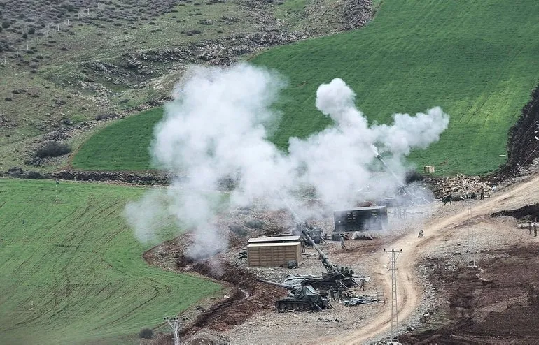Suriye'nin Afrin kırsalında, teröristlerin belirlenen hedefleri, çok namlulu roket atarlar (ÇNRA) ile ateş altına alındı. Üst üste atışlarla bombalanan terör örgütü hedefleri imha edildi.