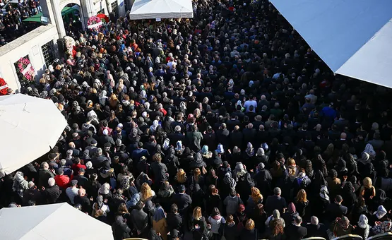 Öte yandan, hayatını kaybedenlere son görevi yapmak üzere camiye gelenler cami avlusuna sığmadı. Cenaze namazına katılan kalabalık havadan görüntülendi. Görüntülerde cami avlusu ve etrafındaki kalabalık görülüyor.