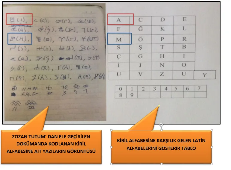 2016'da Vodafone Park'ta 46 kişinin şehit edildiği terör saldırısının planlayıcısı Zozam Kutum'dan ele geçirilen dokümanda Cumhurbaşkanı Erdoğan'ın çevresine yönelik suikast planı yer alıyordu. Emniyet'in 'Doküman 5' adını verdiği bu belge el yazısı ile kaleme alınmıştı. İlginç olan, hedefteki isimlerin Latin alfabesi ile açıktan yazılmamış olması ve Slavların Kiril alfabesiyle kaleme alınmasıydı. Emniyet, Kiril alfabesindeki harflerin yerine Latin alfabesindeki karşılıklarını koyduğunda Cumhurbaşkanı'nın çevresindeki isimlere ulaştı.