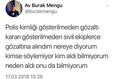 Şişli Nişantaşı'nda ikamet eden Gazeteci Nevşin Mengü'nün kardeşi Burak Mengü geçtiğimiz Cumartesi günü başına geldiğini iddia ettiği bir olayı Twitter'dan paylaştı. Mengü'nün paylaşımında yaptığı açıklamada "Polis kimliği gösterilmeden gözaltı kararı gösterilmeden sivil ekiplerce gözaltına alındım. Nereye diyorum kimse söylemiyor. Kim aldı bilmiyorum neden aldı onu da bilmiyorum" dedi.