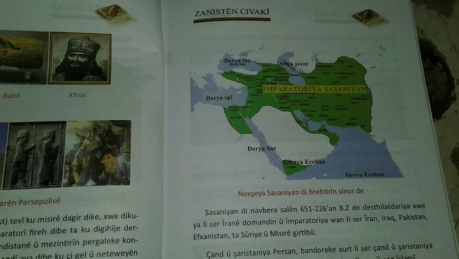 PYD terör örgütü üyelerinin eğitim sırasında kullandıkları kitaplardaki Sasani İmparatorluğu resimleri böyle görüntülendi.