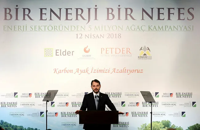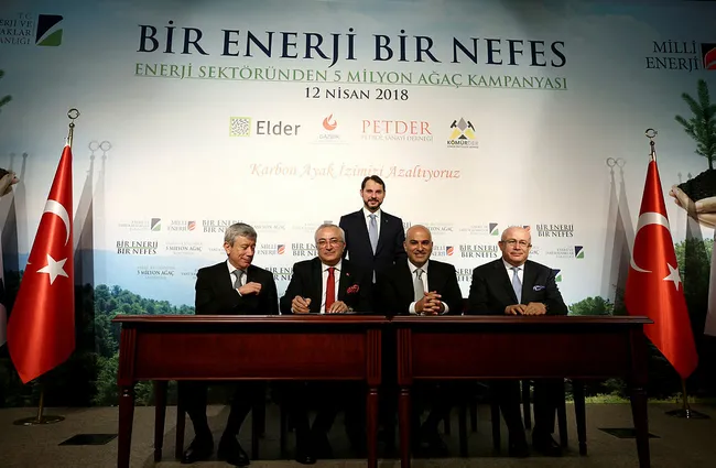 Enerji ve Tabii Kaynaklar Bakanı Berat Albayrak, Türkiye'nin dünyayı en az kirleten ülkeler arasında olduğunu belirterek, "Enerji sektörü olarak 2018 yılında toplamda 5 milyon ağaç dikeceğiz. Bu sadece bir başlama vuruşu. Eminim ki başka paydaşların da dahil olmasıyla bu süreci çok daha ileri bir noktaya taşıyacağız." dedi.