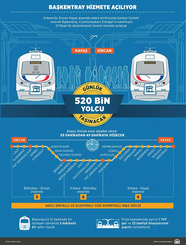 Kayaş ile Sincan arasında çalışacak Başkentray'ı kullanacak arkadaşlarıma hayırlı olsun diyorum. Üçüncü banliyo hattımızı hayata geçirdik. Ankara'nın pek çok altyapısıyla birlikte şehrin iki ucu bu hatla birleşiyordu.