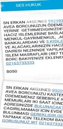 Her şey nisan ayının başında tanımadığım bir numaradan aldığım çağrıyla başladı. Geri dönüş yaptığımda santral görevlisi numaranın Ses Hukuk Bürosu'na ait olduğunu belirterek, banka veya GSM şirketlerine borcum olması halinde aranmış olabileceğimi söyledi. Borcum olmadığından emin olduğumu belirterek, 'İletin bir daha aranmasın lütfen' diyerek telefonu kapattım. Hemen arkasından adeta bir mesaj bombardımanı başladı; "A.. borcunuzun ödemesini yerine getirmediğinizden dolayı haciz işlemlerine başlanacaktır. Menkul-Gayrimenkul, Araç haczi, bankalardaki ve 3. kişilerdeki hak ve alacaklarınızın haczi icra dairesi nezdinde yapılarak işlem masrafları (487 TL) borç bakiyenize eklenecektir." Numara benimdi ama hitap ettikleri kişi ağabeyimdi. Mesajı hemen ağabeyime ilettim. Açıkçası ondan "Sana da mı göndermişler?" yanıtını alana kadar bu mesajın neden 3. kişiye gönderildiğini sorgulamamıştım. Aynı mesajlar ilerleyen günlerde defaatle gelmeye devam edince ağabeyime borcun içeriğini sordum. Kapattırdığı bir hat nedeniyle borç çıkarıldığını, aslında ilgili operatöre kapatma talimatı verdiğini ve ses kaydının inceleneceğini söyledi. Artık neredeyse her sabah ve öğlen borçluymuşum gibi mesajlar alıyordum.