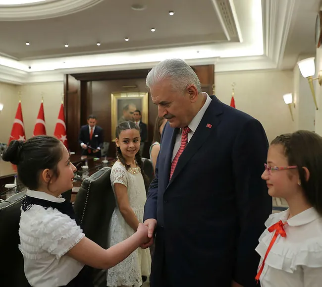 Başbakan Binali Yıldırım, Çankaya'da düzenlenen 23 Nisan Ulusal Egemenlik ve Çocuk Bayramı'nda koltuğunu 11 yaşındaki ortaokul öğrencisi Esma Taşyürek'e teslim etti