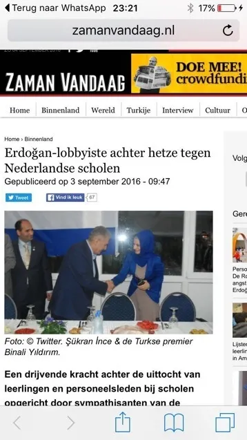 Zaman Vandaag'ın 2 Eylül 2016 tarihinde yer alan "Hollanda okullarında nefrete sebebiyet veren Erdogan lobicisi" başlıklı haberinde, haberinde, "Erdoğan'ın lobiciliğini yapan Şükran İnce Gülen okullarında öğretmenleri ve aileleri tehdit ederek okuldan ayrılmalarına sebebiyet verdi" ifadelerini kullandı.