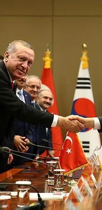 Cumhurbaşkanı Recep Tayyip Erdoğan, Güney ve Kuzey Kore arasında yapılan görüşmelerden duyduğu memnuniyeti belirterek, "Temenni ediyoruz ki bu kararlılık bundan sonra da aynen devam eder. Türkiye olarak, bu konuda üzerimize düşen görev neyse bunları yapmaya hazırız" dedi. Cumhurbaşkanı Erdoğan, Özbekistan ziyaretin ardından geldiği Güney Kore'de dün Devlet Başkanı Moon Jae-in tarafından başkent Seul'deki Mavi Saray'da resmi törenle karşılandı. Cumhurbaşkanlığı Sarayı'nda Erdoğan ile Güney Kore Devlet Başkanı Moon yaklaşık 1 saat süren baş başa görüşme gerçekleştirdi. Ardından heyetler arası görüşmelere başkanlık eden iki lider, toplantının basına açık kısmında konuştu. Cumhurbaşkanı Erdoğan, Güney Kore ve Kuzey Kore arasında yapılan görüşmelerin dünya barışına çok ciddi katkısı olacağını vurguladı. Erdoğan, Kore Yarımadası'nda kabul edilen tarihi nitelikteki Barış, Refah ve Birleşme için Panmunjom Ortak Deklarasyonu'ndan duyduğu memnuniyeti ifade ederek, "Dünyada oluşan korkuları, endişeleri ortadan kaldıran bir görüşme olmuştur. Bunu başarılı bir şekilde gerçekleştirmeniz sebebiyle sizleri tebrik ediyoruz. Temenni ediyoruz ki bu kararlılık bundan sonra da aynen devam eder. Bizler Türkiye olarak, bu konuda üzerimize düşen görev neyse yapmaya hazırız" dedi. Moon ise, Korelerarası zirve vesilesiyle Güney ve Kuzey Kore'nin Kore Yarımadası'nda bir daha savaş olmayacağını ilan ettiklerini, barış, refah ve birlikte yaşama için yeni bir yol açmaya karar verdiklerini vurguladı. İki lider, Filistin ve Suriye dâhil olmak üzere Orta Doğu hakkında da görüş alışverişinde bulundu. Suriye'deki ihtilafın kalıcı siyasi bir çözüme kavuşturulması ve insani krize çözüm bulunması için uluslararası toplumun ortak çaba göstermesi gerektiği dile getirildi. Güney Kore Devlet Başkanı Moon, Türkiye'nin Suriye'deki insani krize çare bulunması amacıyla gösterdiği çabaları büyük bir takdirle karşıladıklarını belirtti. Erdoğan ve Moon, dünya barışı ve istikrarı ile terör ve mülteci krizi gibi küresel ölçekteki konularda işbirliği yapma hususunda mutabık kaldı. Moon ve Kore halkı tarafından kendisine gösterilen sıcak misafirperperlik dolayısıyla takdirlerini dile getiren Tayyip Erdoğan, Devlet Başkanı Moon'u Türkiye'ye davet etti. Devlet Başkanı Moon da Cumhurbaşkanı Erdoğan'ın davetini kabul etti.