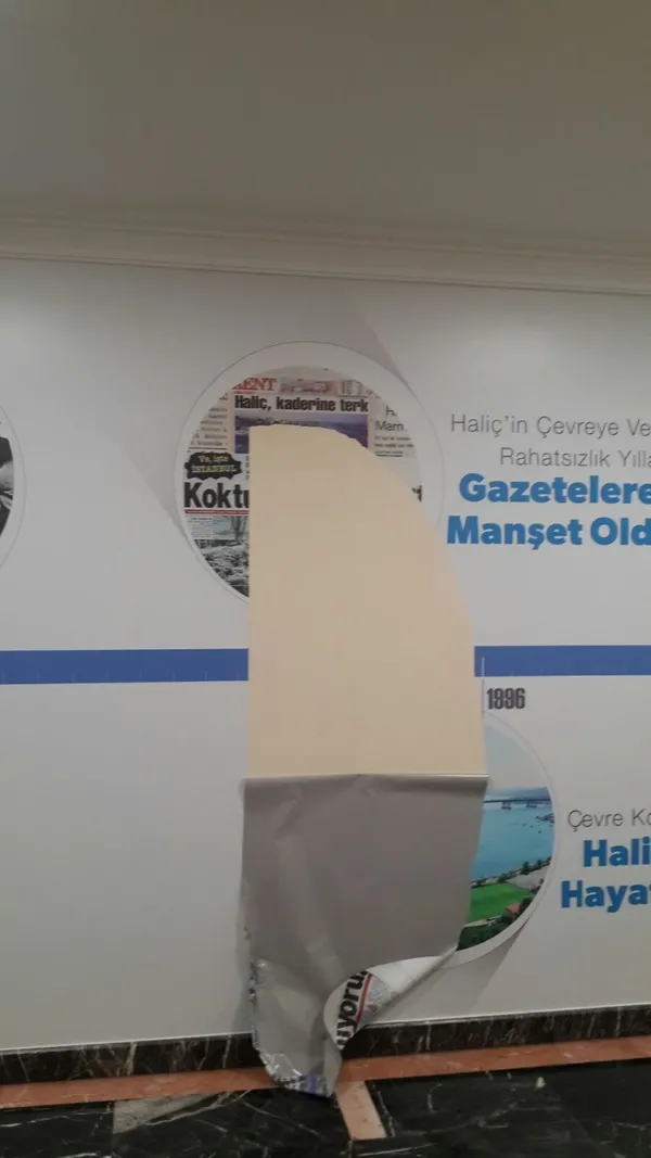 Bu amaçla, belediyenin başkanlık binasının girişi ile Meclis toplantılarının yapıldığı salonun duvarlarına, İSKİ'nin yaptığı işlere ilişkin tanıtım afişleri yapıştırıldı. CHP Grup odasının bulunduğu tarafa boydan boya asılan tanıtım afişlerinde; dönemin belediye başkanı Nurettin Sözen'in, burnunu Haliç'teki pis koku nedeniyle kapattığı bir fotoğrafı yer aldı.