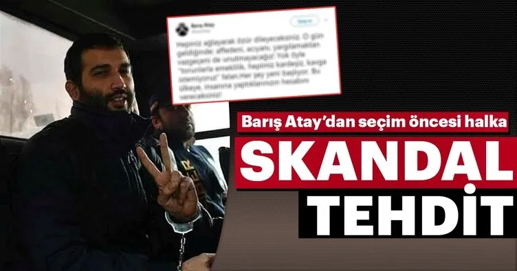 Barış Atay'ın seçim öncesi sosyal medya paylaşım sitesi twitter üzerinden savurduğu tehditler dünün en çok konuşulan konularından biri olmuştu. İstanbul Cumhuriyet Başsavcılığı'nın yürüttüğü bir soruşturma kapsamında hakkında gözaltı kararı verilen Barış Atay'ın bu sabah gözaltına alındığı öğrenildi. Atay, ifadesi alınmak üzere Vatan Caddesi'nde bulunan Güvenlik Şube Müdürlüğü'ne götürüldü.