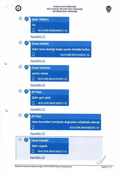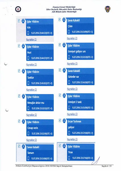 İŞTE 15 TEMMUZ GÜNÜ SANIKLARIN MESAJLAŞMALARI;