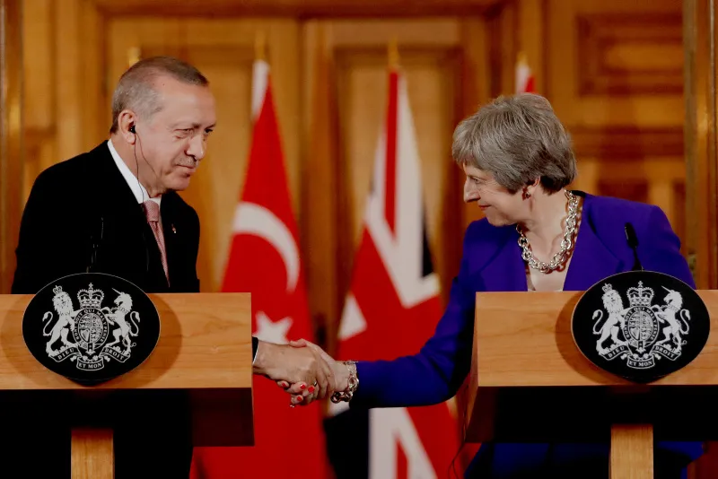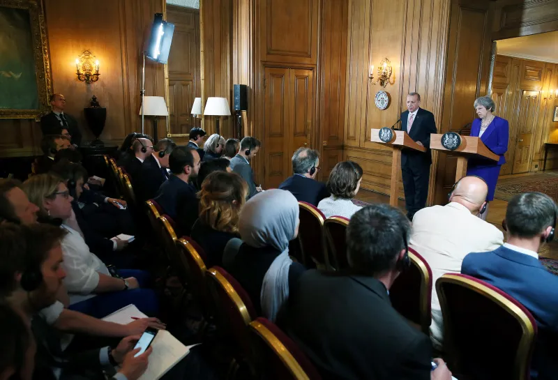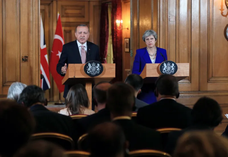 Erdoğan, İngiltere Başbakanı Theresa May ile bir araya geldi. İkili ve heyetler arası görüşmelerin ardından Erdoğan ve May ortak basın toplantısı düzenledi.