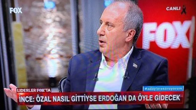 Muharrem İnce FOX TV'de katıldığı programda 'Demirel ve Özal nasıl gittiyse, Erdoğan da öyle gidecek' dedi. FOX TV hemen ekrana KJ olarak 'Özal nasıl gittiyse Erdoğan da öyle gidecek' yazdı.