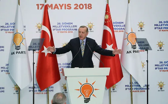 Yaşanan süreçte AK Partili milletvekillerinin özverili çalışmalar yaptıklarını belirten Erdoğan, erken seçimlere ilişkin ise, "15 Temmuz'da, 16 Nisan'da, Fırat Kalkanı ve Zeytin Dalı Harekatında birlikte hareket ettiğimiz MHP ile işbirliğimizi önümüzdeki milletvekilliği ve cumhurbaşkanlığı seçimlerinde sürdürebilmek için gereken hukuki alt yapıyı da bu arada hazırlamıştık. Bu süreçte ana muhalefet partisi sık sık bize meydan okuyup erken seçim çağrısı yapıyordu, ana muhalefetin başındaki zatın kalitesizliğini, riyakarlığını iyi bildiğimiz için bu çağrılara çok da itibar etmedik. Ancak, MHP Genel Başkanı çok farklı gerekçelerle böyle bir çağrıda bulununca artık bu duruma daha fazla kayıtsız kalamayacağımızı gördük. Erken seçim fısıltısı adeta tüpten çıkan macun gibidir. Bir daha eski duruma döndürülemez. Bizim bu konularda nasıl dikkatli olduğumuzu. Nasıl hassasiyet gösterdiğimizi sizler de biliyorsunuz. Erken seçim çağrısı Cumhur İttifakı'nda birlikte olduğumuz partiden geldiği için artık bu konuda bir karar verme mecburiyeti ile karşı karşıya kaldık. Aramızda arkadaşlarımızla istişarelerimizi yaptık, Sayın Bahçeli'nin konuşmasını duyduğumuz andan itibaren yaptığımız uzun ve kapsamlı istişareler sonunda bu konuyu ülkemizin gündeminden bir an önce çıkartmaya karar verdik. Hemen ertesi günü Sayın Bahçeli ile yaptığımız görüşmenin ardından 24 Haziran tarihini erken seçim günü olarak milletimize Cumhurbaşkanlığı Külliyesinden açıkladık. Sizler henüz 1,5 yılınız olmasına rağmen ülkeniz ve milletimiz için bir kez daha fedakarlık yaparak erken seçim kararını aldınız ve süreci başlattınız. Benim gözümde 26. Dönem TBMM, birinci Meclisten sonraki ikinci kurucu Meclistir. Sizler daha 'bismillah' derken Türkiye'yi kaostan kurtardınız. Sizler başka partilerde her biri kriz sebebi olan değişimleri suhuletle gerçekleştirdiniz. Darbecilerin karşısına aslanlar gibi dikildiniz, terör örgütlerine sınırlarımız içinde ve dışında dünyayı dar ettiniz. Sizler herkesin hayalini gerçeğe dönüştürüp ülkemizi yeni bir yönetim sistemine kavuşturdunuz. Kurucu sıfatını siz hak etmeyeceksiniz de kimler hak edecek. Şimdi 26. Dönem olarak önümüzde son ve çok hayati bir imtihan daha var. Bu imtihan 24 Haziran seçimlerini hem milletvekilliğinde hem cumhurbaşkanlığında başarı ile tamamlamaktır. Milletimize ve kendimize olan güvenimiz sayesinde hiçbir mecburiyetimiz olmadığı halde başarı çıtasın sürekli yükselttik. Cumhurbaşkanlığı görevine en çok oyu alının değil, oyların yarısından fazlasını alanın seçilmesi şartını biz getirdik. Çünkü biz ülkemizin sorunlarının ancak milletimizin kahir ekseriyetinin sahip çıktığı, kendi temsilcisi olarak gördüğü bir cumhurbaşkanının yönetiminde çözülebileceğine inanıyoruz. Hayatımızda ne seçimden ne de seçim başarısının çıtasının yüksekliğinden kaçtık. Bu sebeple 24 Haziran seçimlerinde diğer tüm seçimlerden daha çok çalışmak zorundayız" ifadelerini kullandı.