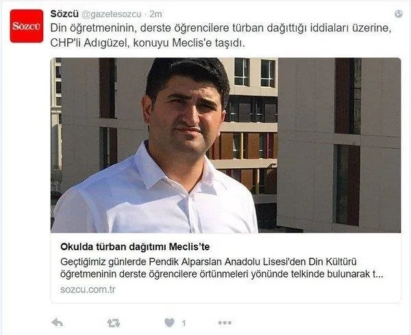 CHP'nin başkan adayı Muharrem İnce her ne kadar mitinglerinde başörtüsüne özgürlük naraları atsa da partisinin ve adaylarının geçmişleri kendilerini ele veriyor. İstanbul'dan aday gösterilen Onursal Adıgüzel'in din kültürü ve ahlak bilgisi öğretmeninin öğrencilere başörtüsü dağıtmasına karşı çıkmış ve konuyu meclise taşımıştı.