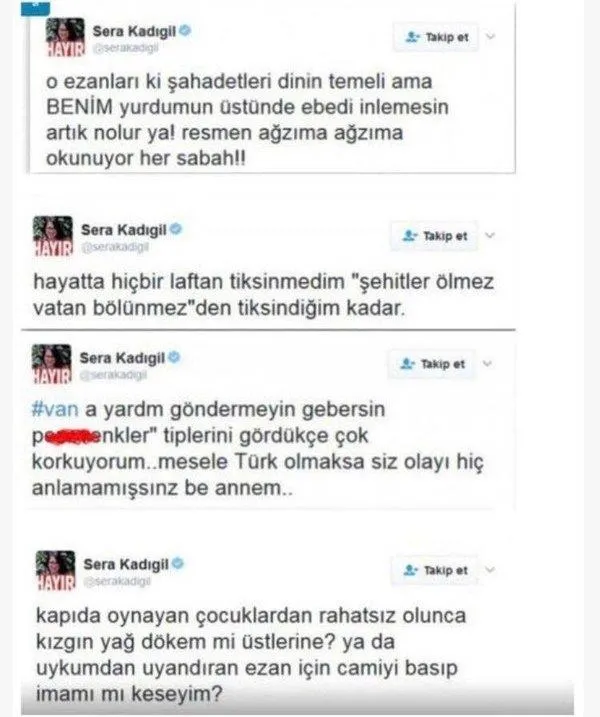 SERA KADIGİL: EZANA VE ŞEHİTLERE HAKARET
