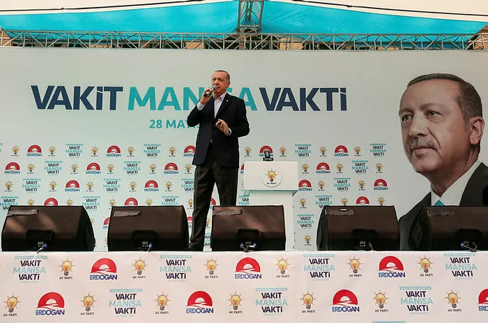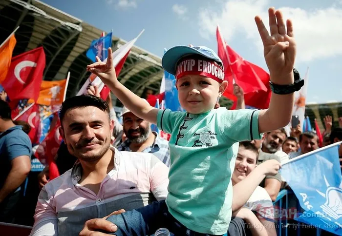 Vakit birlik vakti diyor muyuz? Vakit Manisa vakti diyor muyuz? Vakit Türkiye vakti diyor muyuz? Unutmayın yaparsa sadece AK Parti yapar. Geçtiğimiz 16 yılda ülkemizi 3,5 kat büyüttük. 2023'e hedeflerimize ulaşarak ülkemizi 2 kat daha büyütmeye talibiz. Biz milletimize efendilik taslamya değil hizmetkar olmaya geldik. 24 Haziran'da yeniden yatırım ve proje için milletimizden destek arıyoruz. 24 Haziran'da AK Parti'yi ve Cumhurbaşkanlığı'nda şahsımı desteklemeye hazır mıyız? Sizlerin desteği ile irade, erdem ve cesaretle Türkiye'yi şahlandırıyor muyuz?