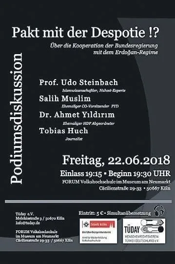 PYD/YPG'NIN kırmızı bültenle aranan eski eş başkanı Salih Müslüm'ün, 24 Haziran seçimlerinden iki gün önce video konferansla katılarak konuşacağı konferansa Köln Büyükşehir Belediyesi'nin resmi destek verdiği bildirildi. Köln Belediyesi'nin söz konusu konferansa sponsor olduğu öğrenildi.