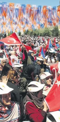 SİYASETİMİZ HİZMET: Tarihi bir dönemece geldik. Geleceğimiz için önemli bir karar vereceğiz. Bu sefer çıtayı daha yükseğe koyuyoruz. Güçlü Meclis, Güçlü Hükümet, Güçlü Türkiye. Hedefimiz durmak yok, yola devam. Bizim siyasetimizde eser var, emek var, değer var.