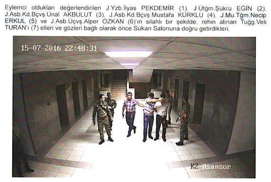 Sanık Erkul, karargah bahçesine çıktığı sırada bacağından ve sırtından vurularak yaralandığını dile getirerek, polisler tarafından hastaneye götürüldüğünü söyledi.Kimseye ateş açmadığını öne süren Erkul, dönemin Jandarma Genel Komutanlığı Personel Daire Başkanı Tuğgeneral Veli Turan'ı derdest edenler arasında yer almadığını iddia etti.
