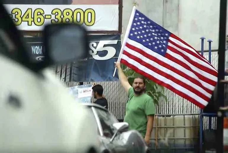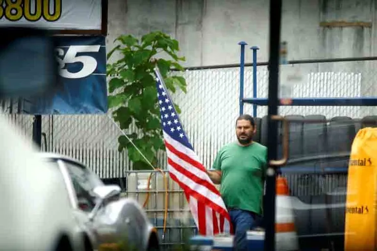 Yıldırım'ın Türk çalışanı daha sonra ABD bayrağını eline alarak coşkuyla sallıyor.