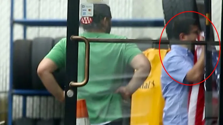 Adil Öksüz'ün kayınbiraderi Yıldırım'ın işyerine ABD bayrağı asmaya çalışırken bunu önce kendisinin öptüğü, ardından yanındaki yeşil tişörtlü çalışanına öptürdüğü görülüyor.