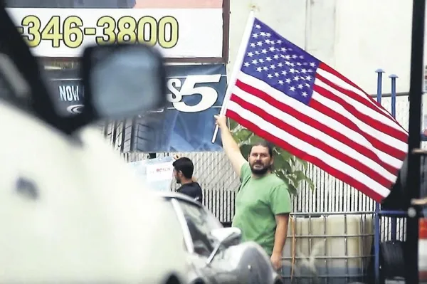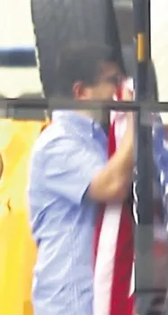 Yıldırım'ın Türk çalışanı daha sonra ABD bayrağını eline alarak coşkuyla sallıyor. Abdulhadi Yıldırım ve çalışanının sevgi gösterisinin ardından bayrak, işyerinin dış kısmına asılıyor.