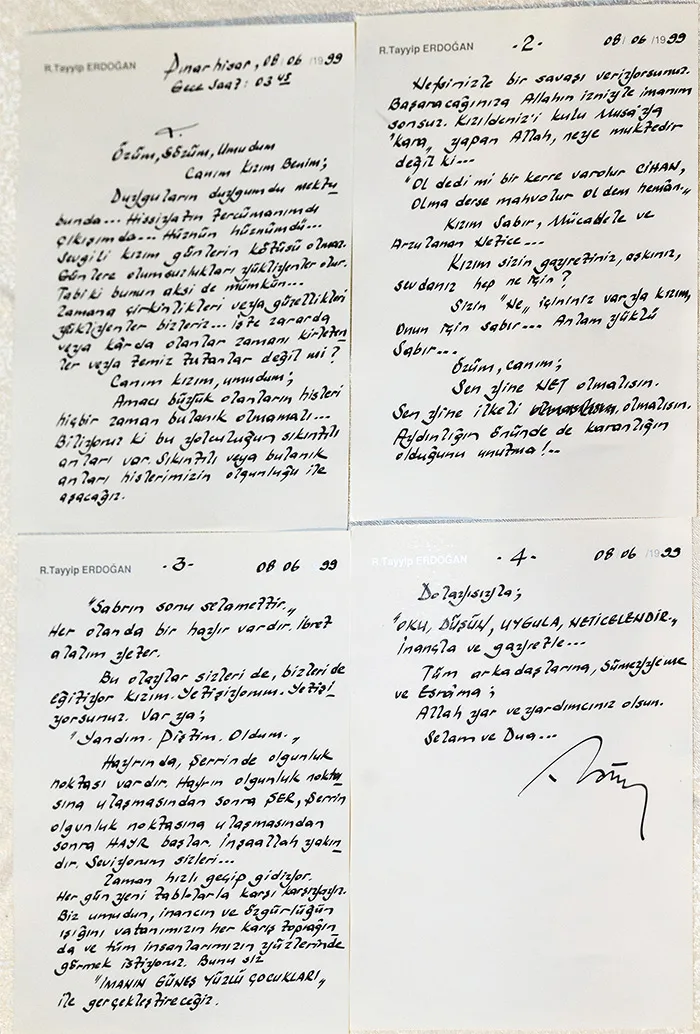 Esra Albayrak babası Cumhurbaşkanı Erdoğan'ın yıllar önce cezaevinden yazdığı mektubu paylaştı