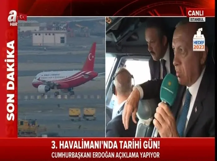 Cumhurbaşkanı Erdoğan, kokpitten yaptığı konuşmada, muhteşem bir havalimanını inşa etmenin mutluluğu içinde olduklarını söyledi.