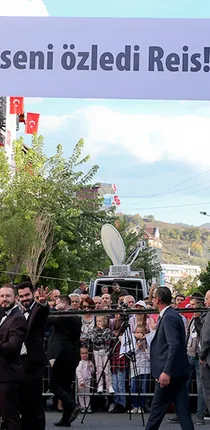 Şehir merkezine üzerinde Cumhurbaşkanı Erdoğan'ın fotoğrafının bulunduğu büyük bir poster asılırken, katılımcılara seçim afişleri dağıtıldı.
