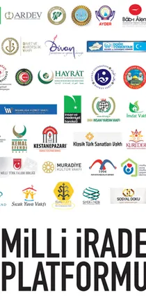 HOCA AHMET YESEVİ YARDIMLAŞMA VE DAYANIŞMA DERNEĞİ, ÜNİVERSİTE YÖNETİCİLERİ DERNEĞİ (ÜNYÖNDER), ARAP DERNEĞİ, FESİAD, BAŞAKŞEHİR GENÇLİK VE KADIN PLATFORMU, İMKANDER İNSANI MÜDAFAA VE KARDEŞLİK DERNEĞİ, TÜZDEV, SADABAD PLATFORMU, MANİSA VAKFI, 28 ŞUBAT ÖĞRENCİ DERNEĞİ, ULUSLARARASI TÜRKİSTAN BİRLİĞİ DERNEĞİ, TÜRK GENÇLİK VAKFI, TÜM SİVİL HAVACILAR DERNEĞİ, (GÜDEF) GÜMÜŞHANE DERNEKLER FEDERASYONU, MALEZYA ULUSLARARASI İSLAM ÜNİVERSİTESİ MEZUNLAR DERNEĞİ, KALEM VAKFI, KADIN SAĞLIKÇILAR EĞİTİM VE DAYANIŞMA VAKFI, ÇAYELİ VAKFI, BEŞİR DERNEĞİ, 15 TEMMUZ DERNEĞİ, ZONGULDAK DERNEKLERİ FEDERASYONU, RİZE DERNEKLER FEDERASYONU, TÜRES (TÜM RESTORANLAR LOKANTALAR VE TEDARİKÇİLER DERNEĞİ), HAYRAT İNSANİ YARDIM DERNEĞİ, ADIYAMANLILAR VAKFI, İSMET EFENDİ EĞİTİM, KÜLTÜR, YARDIMLAŞMA VE ESKİ ESERLERİ KORUMA VAKFI, GRTC-KÜRESEL ARAŞTIRMA DÜŞÜNCE MERKEZİ, BİRKONFED İŞ DÜNYASI KONFEDERASYONU, ANADOLU İLETİŞİM VE EĞİTİM DERNEĞİ, MARMARA ÜNİVERSİTESİ MEZUN VE MENSUPLARI DERNEĞİ (MÜMDER), ANADOLU YAYINCILAR DERNEĞİ, SURİYE NUR DERNEĞİ, RUH SAĞLIĞI DERNEĞİ, EVRENSEL HAFIZLAR DERNEĞİ, FATİH GENÇLİK VAKFI, KONYA YÜKSEK ÖĞRENİM YAPTIRMA DERNEĞİ, İHYA İLİM HİZMET VE YARDIMLAŞMA VAKFI, ÖNSİAD, SEMERKAND VAKFI, HAY SANAYİCİ VE İŞ ADAMLARI DERNEĞİ, İSTANBUL EĞİTİM VAKFI, İSTANBUL DÜŞÜNCE VE MEDENİYET DERNEĞİ - İSDÜŞÜM, İSTANBUL TOKAT DERNEKLER FEDERASYONU - İSTOKDEF, YİĞİTBAŞI VAKFI - MANİSA, YENİ DÜNYA VAKFI, YEDİHİLAL DERNEĞİ, YAVUZ SELİM VAKFI, YARDIMELİ, VEYSEL KARANİ HIRKA-I ŞERİF CAMİ HİZMET VAKFI, VERENEL YARDIMLAŞMA VE DAYANIŞAMA DERNEĞİ, VEFADER, ÜNİVERSİTE ÖĞRETİM ELEMANLARI YARDIMLAŞMA ve DAYANIŞMA DERNEĞİ - ÜNDER, ÜMRANİYE HİZMET VAKFI, ÜMMET VAKFI, ÜLFET EĞİTİM VE YARDIMLAŞMA DERNEĞİ, UTESAV, ULUSLARARASI HUKUKÇULAR BİRLİĞİ, ULUSLARARASI ÖĞRENCİ DERNEKLERİ FEDERASYONU- UDEF, TÜRKİYE YAZARLAR BİRLİĞİ, TÜRKİYE İMAM HATİPLİLER VAKFI - TİMAV, TÜRKİYE İLMİ İÇTİMAİ HİZMETLER VAKFI, TÜRKİYE GÖNÜLLÜ TEŞEKÜLLERİ VAKFI, TÜRKİYE GENÇLİK VAKFI - TUGVA, TÜRKİYE GENÇLİK STK' LARI PLATFORMU, TÜRKİYE DİL VE EDEBİYAT DERNEĞİ, TÜRKİYE BEYAZAY DERNEĞİ, TÜRKİYE BASIM YAYIN MESLEK BİRLİĞİ, TÜRK-ARNAVUT VE DAYANIŞMA VAKFI, TÜRKİYE GENÇLİK VE EĞİTİME HİZMET VAKFI - TÜRGEV, TÜM SANAYİCİ ve İŞ ADAMLARI DERNEĞİ - TÜMSİAD, TÜKETİCİLER BİRLİĞİ, İNSAN TOPLUM VE MEDENİYET KONFEDERASYONU, TOKAT KONFEDERASYONU - TOKKON, TÜM İLAHİYAT FAKÜLTELERİ YÜKSEK İSLAM MEZUNLARI DERNEĞİ - TİYEMDER, TÜRKİYE İLAHİYAT TEDRİSATINA YARDIM EDEN DERNEKLER FEDERASYONU - TİDEF, FAHRETTİN TACAR EĞİTİM VAKFI - TACEV, ŞEFKAT VAKFI, SÜREYYA EĞİTİM KÜLTÜR VE DAYANIŞMA DERNEĞİ (SÜREYYA-DER), SUFFA VAKFI, SOSYAL POLİTİKALAR DERNEĞİ, SİYER VAKFI, SİYASALLILAR VAKFI, SİYASAL VAKFI, SİVİL DAYANIŞMA PLATFORMU, SICAK YUVA VAKFI, SETA, SEBİLAY, SATUK BUĞRAHAN İLİM VE MEDENİYYET VAKFI, SAMİ EFENDİ VAKFI - ANKARA, SAKARYA ERENLİ İLME HİZMET VAKFI - SAK-ER, SAĞLIK ELEMANLARI VAKFI, SAFA EĞİTİM YARDIMLAŞMA VE DAYANIŞMA VAKFI, SADAKATAŞI DERNEĞİ, RİBAT EĞİTİM VAKFI, REYHAN KÜLTÜR VAKFI, RABİA PLATFORMU, ÖZDER ÖZEL ÖĞRETİM DERNEĞİ, KEVSER EĞİTİM VAKFI, ÖNDER, ÖMER DERİN VAKFI, OSMANLI ARAŞTIRMALARI VAKFI, OSMANİYE İLİM SANAT VE KÜLTÜR DERNEĞİ, OKÇULAR VAKFI, NUR İLİM KÜLTÜR VE EĞİTİM VAKFI, NİZİP EĞİTİM VE DAYANIŞMA DERNEĞİ, NAZİLLİ KÜLTÜR VE EĞİTİM VAKFI, MÜSTAKİL SANAYİCİ VE İŞADAMLARI DERNEĞİ - MÜSİAD, MÜSENNA ULUSLAR ARASI ÖĞRENCİ DERNEĞİ, MÜFTÜ AHMET HULUSİ EFENDİ EĞİTİM VE SAĞLIK VAKFI, MUTLU YUVA MUTLU YAŞAM DERNEĞİ, MURADİYE MEZUNLAR DERNEĞİ, MURADİYE KÜLTÜR VAKFI, MOZAİK KADIN VE AİLE DERNEĞİ, MİRASIMIZ DERNEĞİ, MİMAR VE MÜHENDİSLER GRUBU, MİLLİ TÜRK TALEBE BİRLİĞİ, MİHVAK, MERVE VAKFI - SAMSUN, MERKEZ SELÇUKLU HİZMET VE EĞİTİM VAKFI, MEMUR-SEN KONFEDERASYONU, MEHMET AKİF FİKİR VE SANAT VAKFI, GENÇLERİ EVLENDİRME VE MEHİR VAKFI, MEDYA PLATFORMU DERNEĞİ, MEDENİYET DERNEĞİ, MAVİ HALİÇ GENÇLİK VE SPOR KULÜBÜ DERNEĞİ, MAVERA VAKFI EĞİTİM VE SAĞLIK VAKFI, MARDİN SOSYAL DAYANIŞMA EĞİTİM VE YARDIMLAŞMA VAKFI - MARVA, MARMARA EĞİTİM GÖNÜLLÜLERİ DERNEĞİ, MANİSA ARAŞTIRMA DERNEĞİ, MAHALLİ İDARELER DERNEĞİ, KÜRESELDEN YERELE, KUTUP YILDIZI SAĞLIK GÖNÜLLÜLERİ DERNEĞİ, KOPUZLAR VAKFI, KLASİK TÜRK SANATLARI VAKFI, KEVSER KÜLTÜR ve EĞİTİME HİZMET DERNEĞİ, KESTANEPAZARI ÖĞRENCİ YETİŞTİRME DERNEĞİ, MİLLİ KÜLTÜR VE AHLAKA HİZMET VAKFI, KESTANEPAZARI FİDAN EĞİTİM KURUMLARI, KASIMPAŞALI KEMAL EFENDİ İLİM VE HİZMET VAKFI, KALEM EĞİTİM KÜLTÜR AKADEMİ DERNEĞİ, KAFKAS VAKFI, KADEM, İZMİR MİLLİ KÜLTÜRE HİZMET VAKFI, İYİLİK YARDIMLAŞMA VE DAYANIŞMA DERNEĞİ - İYİLİKDER, İŞ DÜNYASI VAKFI, İSTANBUL VEFA VAKFI, İSTANBUL SURİÇİ GRUBU DERNEĞİ, İSTANBUL SULTANAHMET VAKFI, İSTANBUL STRATEJİK DÜŞÜNCE VE ARAŞTIRMA DERNEĞİ - İSDAM, İSTANBUL MALİ MÜŞAVİRLER VE MUHASEBECİLER DERNEĞİ - İSMMMD, İSTANBUL İLİM VE KÜLTÜR VAKFI, İSTANBUL GENÇLİK VE DÜŞÜNCE KULÜBÜ DERNEĞİ - GENÇ DÜŞÜN, İLİM SANAT TARİH VE EDEBİYAT VAKFI - İSTEV, İSTANBUL DOSTLUK DERNEĞİ, İSTANBUL DARÜ'L-FÜNUN İLAHİYAT VAKFI, İSRA ULUSLARARASI YARDIMLAŞMA VE DAYANIŞMA DERNEĞİ, İSMAİLAĞA CAMİİ İLİM VE HİZMET VAKFI, İSLAMİ İLİMLER ARAŞTIRMA VE YAYMA VAKFI, İSLAMİ İLİMLER ARAŞTIRMA VAKFI, İSLAM DÜNYASI SİVİL TOPLUM KURULUŞLARI BİRLİĞİ - İDSB, İRFAN EĞİTİM VE KÜLTÜR VAKFI, İNSANLIĞA HİZMET VAKFI, İNSANİ GELİŞİM DERNEĞİ - İGEDER, İNSAN VE MEDENİYET HAREKETİ DERNEĞİ, İMDAT VAKFI, İMAM EBU HANİFE VE İMAM MATÜRİDİ ARAŞTIRMA VAKFI, İLKSEÇ VAKFI, İL