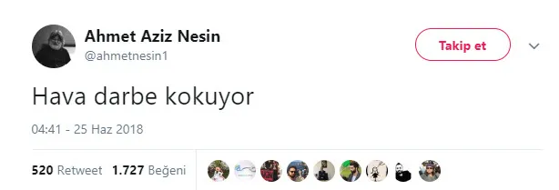 Seçim gecesi darbe tweeti atmıştı