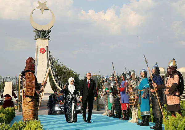Cumhurbaşkanlığı forsunda temsil edilen 16 devletin çok büyük coğrafyada kurulduğunu, büyüdüğünü ve tarihe karıştığını kaydeden Erdoğan, "Türkiye Cumhuriyeti, 2200 yılı aşkın bir devlet geleneğini temsil etmektedir. Bugün yine çok geniş bir coğrafyada hemen hepsinin de temsilcileri aramızda bulunan, tarihi süreklilik bakımından kendimizden ayrı görmediğimiz pek çok dost ve kardeş devlet var. Türkiye Cumhuriyeti Devleti ve onun vatandaşları olarak bizler kademizin merkezine Anadolu'yu yerleştirdik. Bin yıl önce Malazgirt'te Anadolu'ya serptiğimiz tohumlar Türkiye Selçuklu Devleti'yle boy vermişti. Osmanlı, genç bir fidan olarak devraldığı devlet bayrağını İstanbul'un fethiyle 3 kıta 7 iklimi içine alan ulu bir çınara dönüştürdü. Geçtiğimiz yüzyılın başlarında yaşlanan çınarı cumhuriyet aşısıyla yeniden gençleştirdik. Bugün burada milletimize 95 yıllık cumhuriyetimizi yeni bir yönetim anlayışla şahlandırmanın sözünü veriyoruz. Milletimizin bize sağladığı bu imkanı en iyi şekilde kullanarak güçlü Meclis, güçlü hükümet, güçlü Türkiye için yola koyuluyoruz" açıklamasında bulundu.