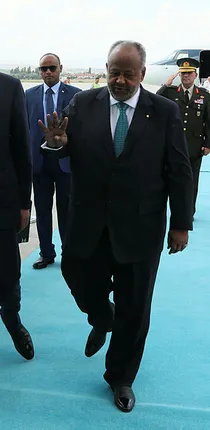 Ankara'ya 13.55'te ayak basan Guelleh'i Ekonomi Bakanı Nihat Zeybekçi resmi törenle karşıladı. Törende Guelleh'in "Rabia" işareti yapması dikkati çekti.