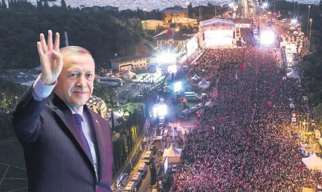 Başkan Recep Tayyip Erdoğan, 15 Temmuz Şehitler Köprüsü'nde düzenlenen anma töreninde çarpıcı mesajlar verdi: 15 Temmuz ile demokrasimizin rüştünü tüm dünyada ispat ettik. İnşallah ülkemizde artık darbe defterini bir daha açılmamak üzere kapattık. Pensilvanya'daki melunun takiye, hile, yalan dolanla, büyük gizlilik içinde büyüttüğü ahtapotun kollarını kestik. Kimin kimlerle iş tuttuğunun da farkındayız. Umutlarını FETÖ'ye bağlayanların nasıl hayal kırıklığı yaşadığını biliyoruz