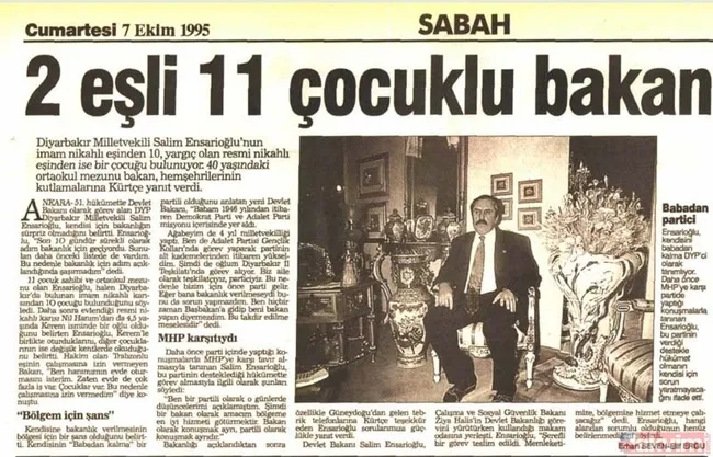 7 Ekim 1995 tarihli Sabah Gazetesi haberi...