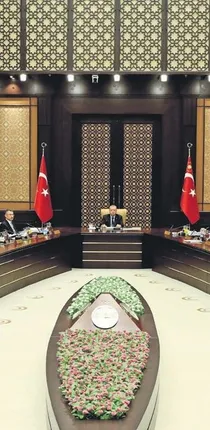 Cumhurbaşkanlığı Kabinesi, Cumhurbaşkanı Recep Tayyip Erdoğan başkanlığında ikinci toplantısını dün yaptı. Külliye'de dün 14.30'da başlayan toplantının ana gündem maddelerini hükümetin 100 günlük eylem planı ile ABD'nin Türkiye'ye yaptırım uygulanacağına ilişkin açıklamaları oluşturdu. 5 saat 40 dakika süren toplantıya ilişkin basın açıklaması yapan Cumhurbaşkanlığı Sözcüsü İbrahim Kalın, özetle şunları söyledi: