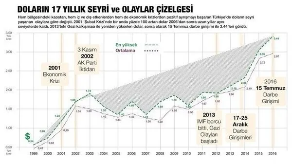 2013'teki Gezi kalkışması ile yeniden yükselen dolarda, özellikle 17-25 Aralık ve 15 Temmuz saldırıları sonrası ciddi yükselişler yaşandı.