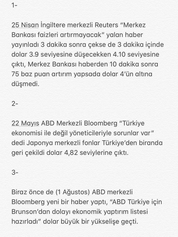 Türkiye'de döviz kurlarındaki artış yüzde 90 oranında dış baskı ve dışarıdan manipülasyon kaynaklı. Fotoğrafb çok net; Türkiye, askeri ve siyasi olarak ABD'ye tam köle olmayı kabul eder, Suriye'de sözde bir PKK devletine, Kudüs'ün ve Gazze'nin tamamen işgaline göz yumarsa Türkiye ekonomisine operasyon da biter.