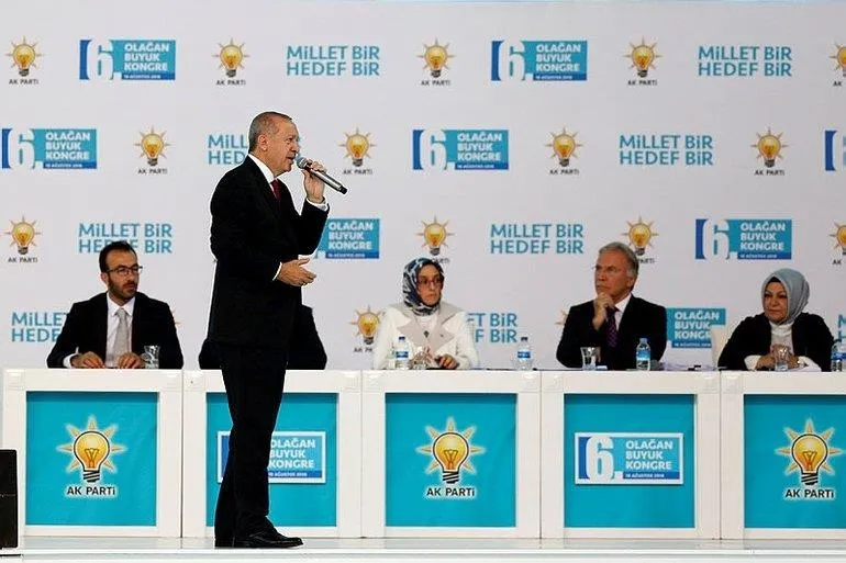 Başkan Recep Tayyip Erdoğan, AK Parti 6. Olağan Büyük Kongresi'nde ABD'ye yüklenerek, "Bize stratejik ortak gibi gözüküp de attığı her adımda bizi stratejik hedef haline getirmeye çalışanlara teslim olmadık, olmayacağız." dedi. Ankara Arena Kapalı Spor Salonu'nda gerçekleştirilen kongrede Erdoğan özetle şöyle dedi:
