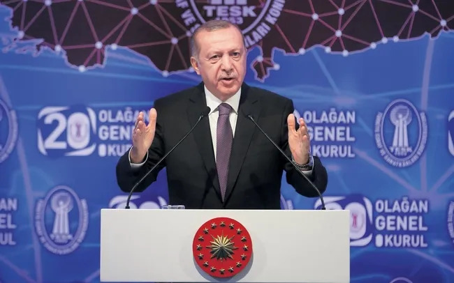 Başkan Recep Tayyip Erdoğan döviz kurundaki dalgalanma başta olmak üzere ekonomiyi olumsuz etkileyen tüm hadiseleri serbest piyasanın dışına çıkmadan çözmenin mücadelesini verdiklerini belirterek, "Karşı karşıya bulunduğumuz sorunların sebebi ne olursa olsun milletimizin bize gösterdiği güveni hak edebilmek için çözmekte kararlıyız" dedi. Erdoğan, Türkiye Esnaf ve Sanatkârları (TESK) Konfederasyonu'nun 20'nci Olağan Genel Kurulu'nda şu mesajları verdi: