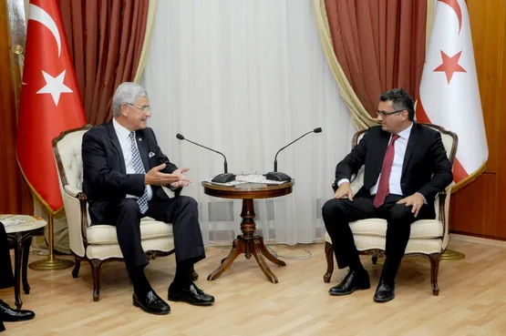 KKTC'de temaslarda bulunan TBMM Dışişleri Komisyonu Başkanı Volkan Bozkır ve beraberindeki heyet, Cumhuriyet Meclisi Başkanı Teberrüken Uluçay tarafından makamında kabul edildi.