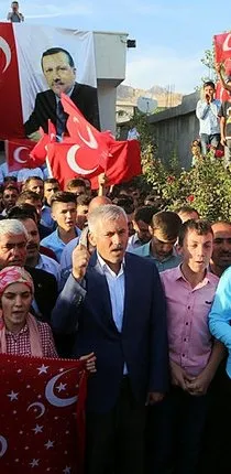 Şehit korucu Süleyman Tosun'un Fatih Mahallesi'ndeki evinin önünde toplanan 7'den 70'e her yaştan vatandaş, ellerinde Türk bayrakları ile "kahrolsun PKK" sloganları attı.