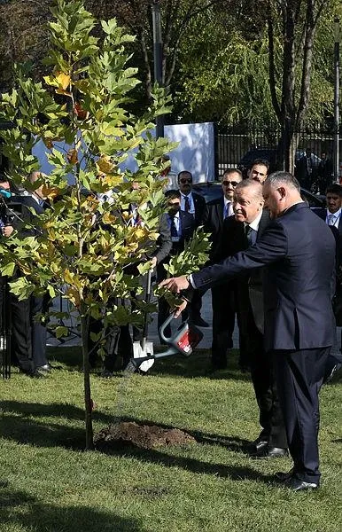 Erdoğan ve Dodon basın toplantısı sonrası, Cumhurbaşkanlığı Sarayı önündeki anıt taşın açılması ve binanın hizmete alınması törenine katıldı. İki lider cumhurbaşkanlığı bahçesinde kendileri adına dikilen çınar ve kırmızı meşe ağaçlarına toprak atarak, can suyu verdi.