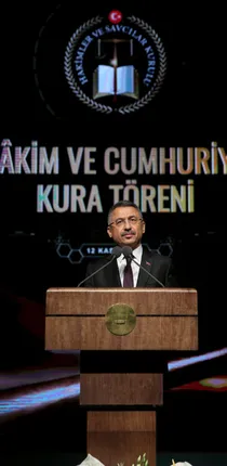 Cumhurbaşkanı Yardımcısı Fuat Oktay ve Adalet Bakanı Abdulhamit Gül, Beştepe Millet Kongre ve Kültür Merkezi'nde adli ve idari yargı hakimleri ile Cumhuriyet savcılarının kura atama töreninde konuştu.