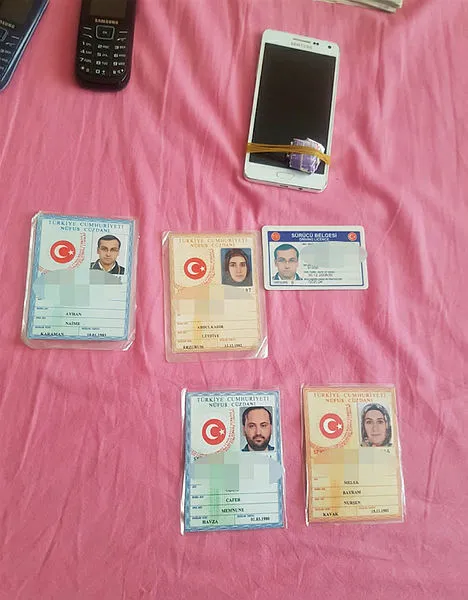 Haklarında yakalama kararı bulunan Mehmet ve eşi Ayşe Çelebi gözaltına alındı. Yapılan aramada, can yelekleri, cep telefonları, başkalarının adına düzenlenmiş sahte kimlikler, 11 bin 800 dolar, 5 bin 925 avro, 2 bin kron ve 4 bin 935 lira ele geçirildi.
